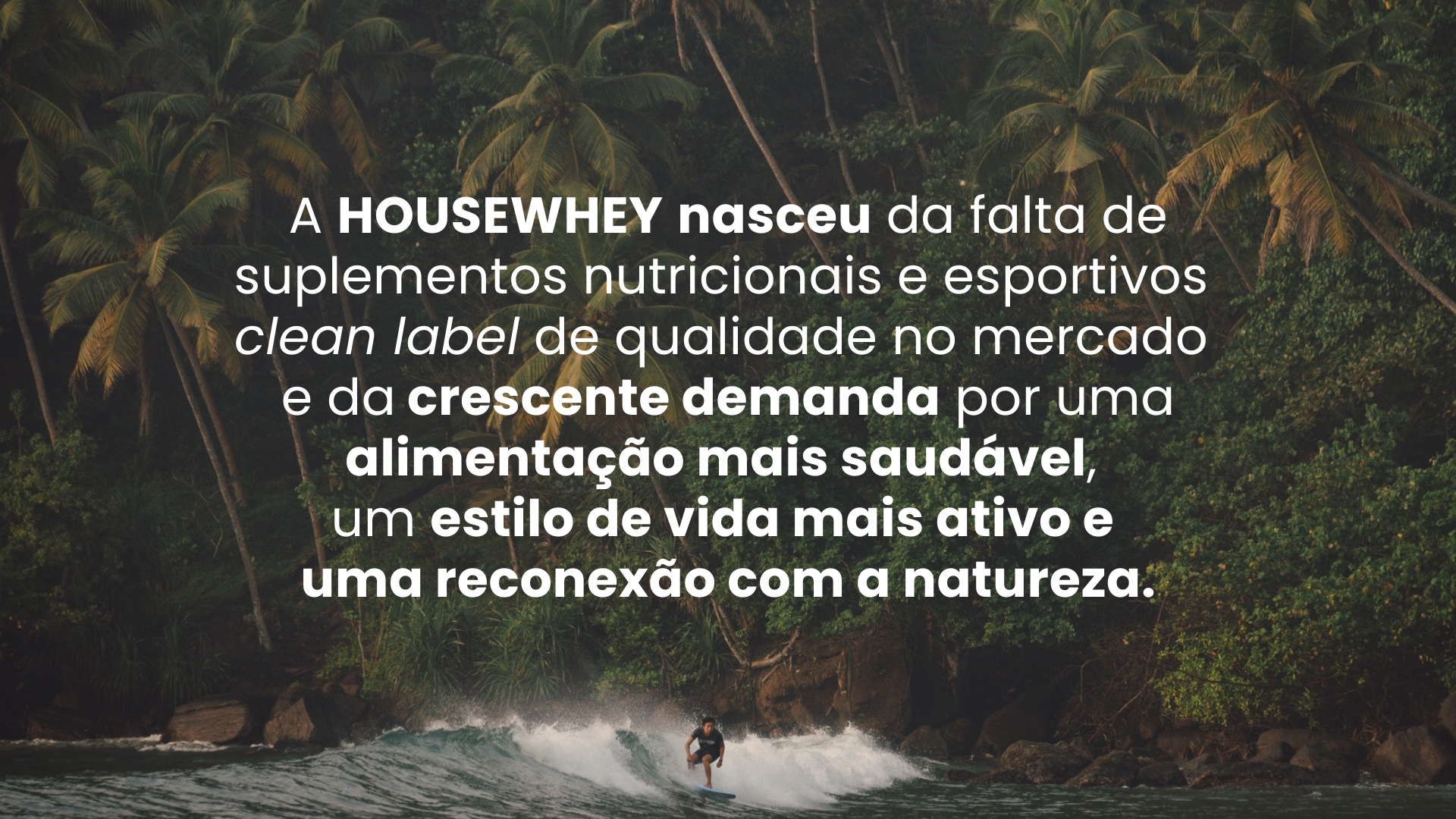 - Nossa missão é te ajudar a ir mais longe! - A HOUSEWHEY é uma empresa de Wellness Technology, dedicada à formulação, fabricação e venda de suplementos esportivos e alimentares, produzidos com ingredientes naturais da mais alta qualidade. Buscamos os melhores ingredientes que a natureza nos oferece, aliados à tecnologia e constante inovação dos processos, sempre focados em melhoria de qualidade de vida, desempenho esportivo e saúde! Mude seus hábitos e viva a Natureza do Esporte com Housewhey!
