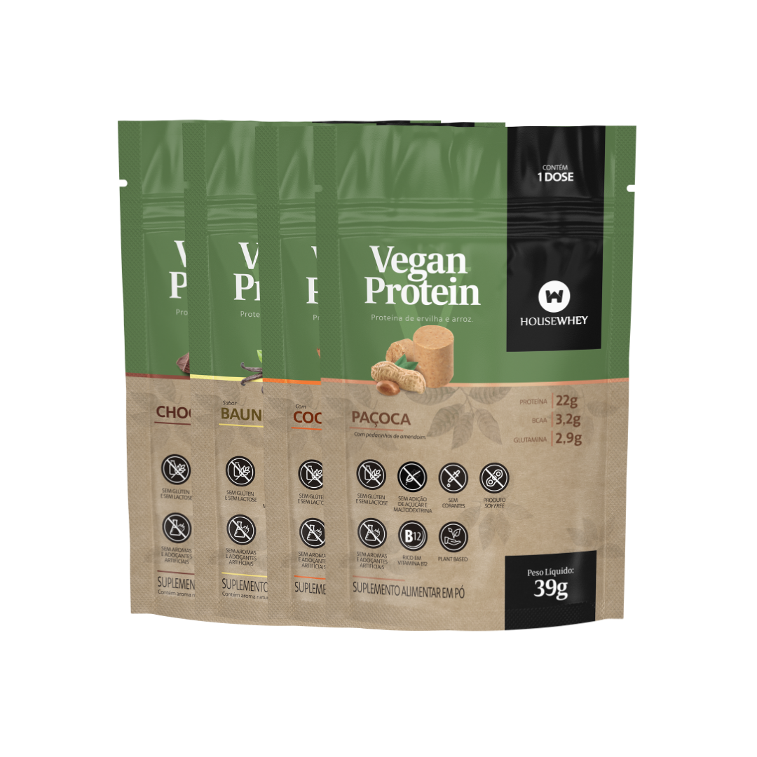 O Kit Deguste Vegan Protein reúne os sabores veganos em versões práticas de sachê, permitindo que você experimente cada um e descubra seu favorito. Cada opção oferece proteínas vegetais de alta qualidade, com sabor natural, textura agradável e todos os nutrientes que seu corpo precisa, sem lactose, sem glúten e sem aditivos artificiais.